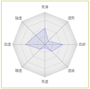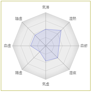 減少した症状: 体が全体が重く感じる、気力が出ない、頭痛持ちである、目が疲れやすい、赤ら顔、粘る痰や鼻水が出る、髪がぱさついているなど