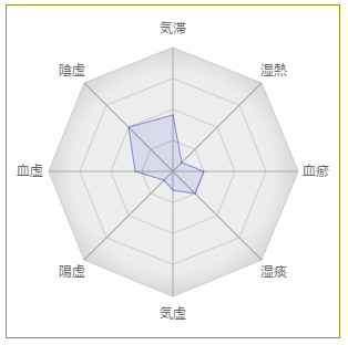 減少した症状: 気力が出ない、目が疲れやすい、顔に血色がない、黒ずみっぽい顔、髪がぱさついている、食べるとお腹が張る