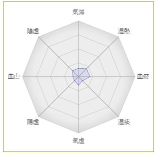 減少した症状: 体が全体が重く感じる、気力が出ない、頭痛持ちである、目が疲れやすい、赤ら顔、粘る痰や鼻水が出る、髪がぱさついているなど
