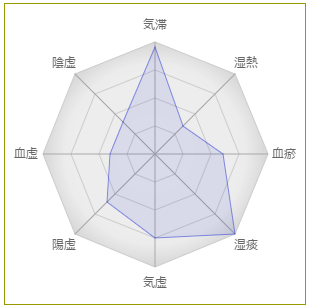 減少した症状: 体が全体が重く感じる、気力が出ない、頭痛持ちである、目が疲れやすい、赤ら顔、粘る痰や鼻水が出る、髪がぱさついているなど