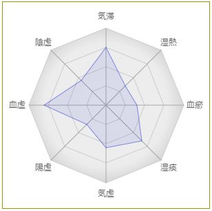 腰に疲れを感じる、よく眠れない、気力が出ない、目が疲れやすい、鼻がつまりやすい、皮膚が乾燥しかさつく、下痢しやすいなど