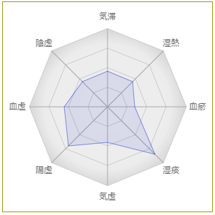 減少した症状: むくみやすい、体が全体が重く感じる、筋肉がつりやすい、よく眠れない、立ちくらみをする、水っぽい痰や鼻水が出る、かゆみを感じるなど