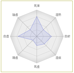 減少した症状: のどがよく渇く、体が全体が重く感じる、腰に疲れを感じる、夢をよく見る、鼻がつまりやすい、唇が割れやすい、月経周期が一定しないなど